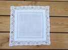 Beige kvadrat duk med knyppling / ボビンレースのスクエアクロス(c